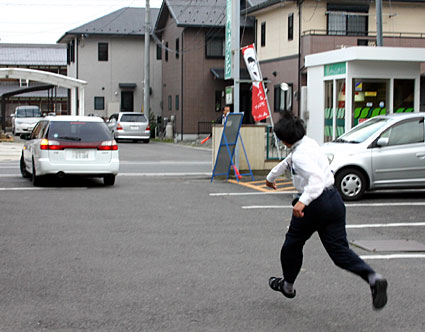 職員が通報ボタンを押して警察に通報する一方、奥野支店長が犯人に対応。現金を受け取った犯人が人質を盾に、玄関前に停めていた車で逃走すると、男性職員が追いかけ、カラーボールを車めがけて投げつけた。