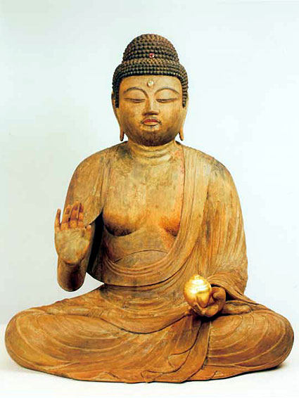 ◇湖南・守山市 守山市吉身の慈眼寺薬師堂に安置される木造薬師如来坐像(写真)がこのほど二年にわたる修理を終え、県立安土城考古博物館で開催中の特別陳列「水の浄土・琵琶湖―琵琶湖文化館の収蔵品を中心に―」において、来年一月に特別公開する。 薬師如来坐像は平安時代の作として同市の指定文化財となっているが、長年の安置により損傷を受け、平成十八年度から修理が行われてきた。その結果、これまでに少なくとも三回の修理を経てきたほか、表面の漆箔を除去したところ、造像当初のままの彩色が鮮やかな形で残されていたことが分かった。
