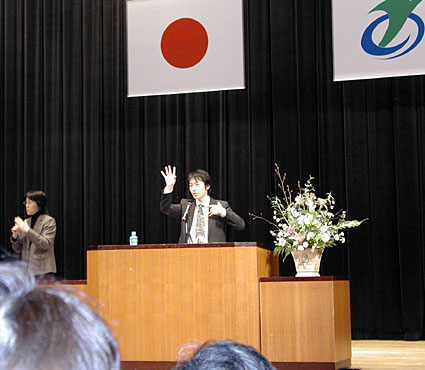 続く講演会では、愛知県の私立豊川高校で数学教師を務める宮本延春さん(39)が「オール1の落ちこぼれ、教師になる~いじめ、挫折、天涯孤独の絶望から夢を実現するまで~」と題し、自分の生い立ちを語った。 「子供の時、いじめられ学校嫌いで成績が最悪のオール1でも、自覚とともに環境が整い、目的に向かって努力すれば、先生になれる。二十三歳の時、始めて九九が全部言えるようになった」と。 嫌なこと、辛いこと、苦しい時、その悩みは成長の証(あかし)であることを自ら学び、教師になった以上「悩みは素晴らしいと子供に教え、一緒に悩んであげたい」と締めくくった。