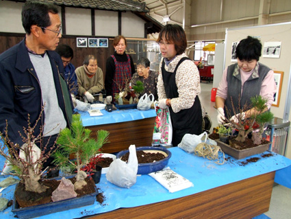 午後一時、アグリパーク竜王内にある農村田園資料館で、講師に竜王園芸の青木康敏社長を迎え、玄関や床の間に飾る「お正月用松竹梅の寄せ植え教室」がスタート。