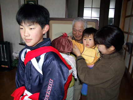 「みんなでわいわいできるので、毎年楽しみにしている」という村田さんもさすがに「初めてなので緊張する」と語り、先にやしゃりさんを紅白のひもで体に巻き付けてもらった川部くんは「思っていたよりも背中に圧迫感がある」と言いながら笑顔をのぞかせた。