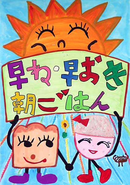 県が推進している「『早寝・早起き・朝ごはん』県民運動を県民に啓発する小・中学生を対象にポスターコンクールの入賞作品がこのほど、決まった。来月八日に近江八幡市鷹飼町の県立男女共同参画センターで開催される「しがの地域づくりフォーラム」で表彰し、応募作品の中から入賞作品を含め百点を展示する。