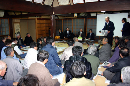 集会では、大林代表が近江八幡市の財政を分析しながら、今は急がず、じっくり構えて、町民と協働で安土独自のまちづくりの必要性を訴えた。