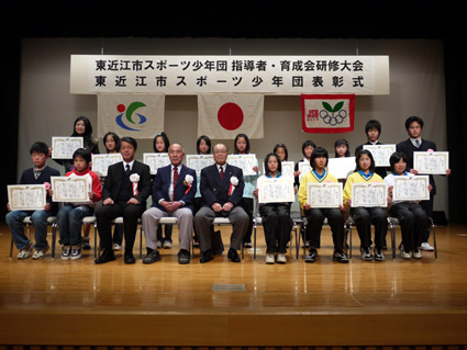 東近江市スポーツ少年団(矢島正男本部長)は二十二日、二十年度の「指導者・育成会研修大会」を五個荘てんびんの里文化学習センターで催し、少年期における指導・練習方法などを学ぶとともに、育成功労者や優秀選手らを表彰した。