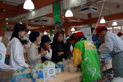 特に、先月二十五日に新築オープンした直売館では、一万四千人が買い物を楽しみ、約二千六百万円(ステーション全体約三千八百万円)を売り上げ、当初の計画を大幅に上回った。