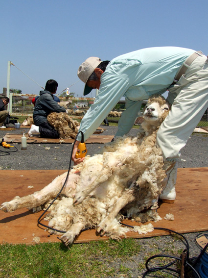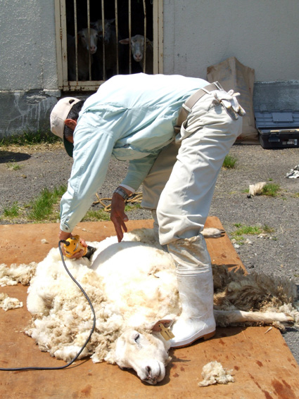 毛糸に適しているコリデール種は、一年間の履歴書ともいうべきフカフカの原毛(二~三キロ)を、電気バリカンなどで職員に刈り取ってもらった。