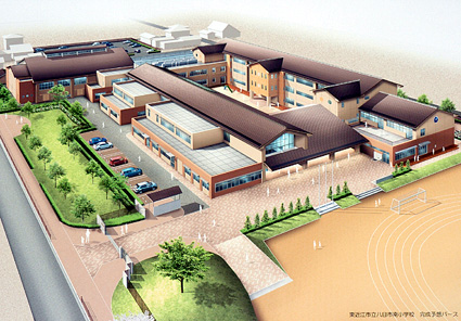 新校舎には、環境教育の学習教材として屋上に十キロワットの太陽光発電パネル、冷暖房、エレベーター、児童増加を見込んだ予備教室を設置するほか、ひまわり幼児園側の道路沿いには、「こども森」(面積約一千平方メートル)を設け、地域住民の憩いの場となる役割も持たす。敷地には、大きな災害時の住民避難所としても利用できる機能が備えられる。
