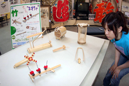 東近江市の世界凧博物館八日市大凧会館(八日市東本町)で、夏休み特別企画「竹でできた・からくり“おもちゃ”」が始まった。八月二十四日まで。