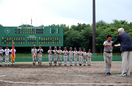 表彰式では、喜多高義・喜多スポーツ代表から、優勝旗と準優勝盾が両キャプテンに手渡され、各選手に記念メダルが贈られた。最優秀選手には攻守に活躍した多賀の岡勝輝投手、優秀選手に久保田悠雅捕手(多賀)、澤井寛司投手(市原)が選ばれた。