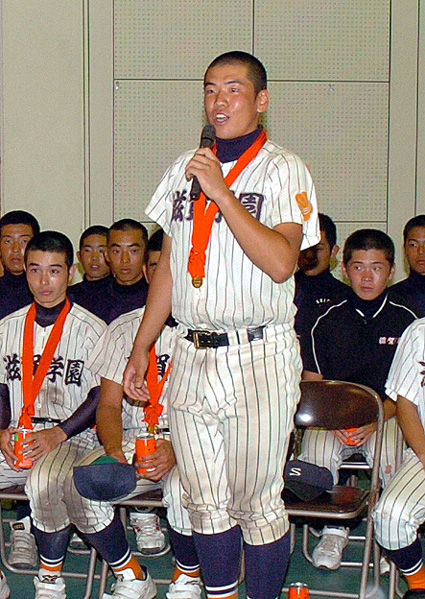この後、清水忠和校長が「おめでとう、本当にうれしい。甲子園に行っても校訓の誠実、忍耐、努力を実践し、すがすがしい姿を全国の皆さんに見せてください」と激励した。
