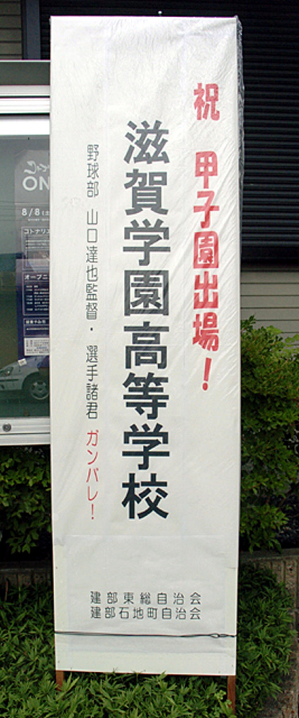 また、山口達也監督の地元、建部石地自治会と建部東総自治会(行政区は建部堺町)は、地区内の建部東穂作会館前に「祝甲子園出場!滋賀学園高等学校」の応援看板を設置し、地元の応援ムードを盛り上げている。