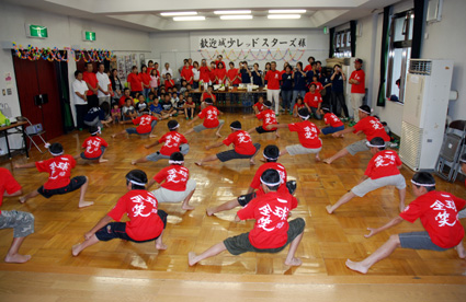 交流会も最高潮に達し、子供たちは保護者らと一緒に両チーム対抗のゲームを楽しみ、大いに笑いを誘った。一方、運動会で毎年取り組んでいると、よさこい踊りを披露した城少レッドの子供たちに、玉緒レッドの保護者らから惜しみない拍手が送られていた。