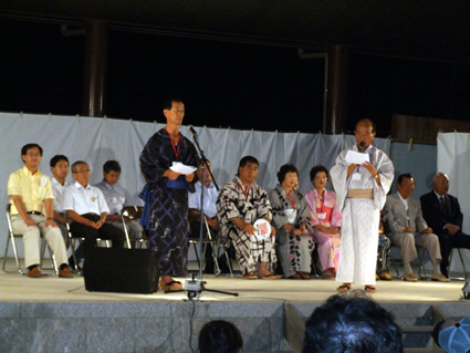 開会セレモニーで、西澤久夫市長は「国際交流は人と人とのつながりや歴史の中で引き継がれてきた。ろうそくの火のようなやわらかく温かい気持ちでまちづくりを担い、交流の輪を広げていきたい」と語り、姉妹都市提携を結ぶ韓国の場岩面友好親善使節団六人も浴衣姿で参加して花を添えた。