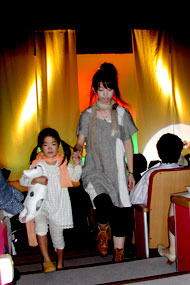 北川陽子さんの演出でTシャツ、洋服、ストール、バック、ふんどし、着物、ワンピース、スカートなどを身にまとい、出演者自ら制作した作品を熱心にアピールしていた。