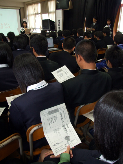 選挙の意義や重要性を学ぶ「滋賀県明るい選挙出前講座」(主催=滋賀県選挙管理委員会、滋賀県明るい選挙推進協議会、協力=竜王町選挙管理委員会、竜王町明るい選挙推進協議会)が二十日、竜王中学校で開かれた。