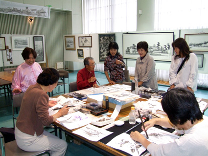 会場では、水彩画や華道、アレンジフラワー、押し花、水墨画など約百二十点を展示。各講座やサークル活動の一端が体験できるコーナーは子どもから大人まで大勢の人でにぎわい、体験後に受講を申し込む人もいた。