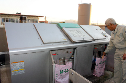 例えば、総合医療センターには、業務用生ゴミ処理機「厨芥処理機」が二台設置されている。一台で一日当たり百キログラムの処理能力があり、機械で微生物醗酵により七分の一に処理され、近江たんぽぽ村で引き取りを行っている。