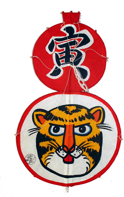 干支凧(北海道)、津軽凧(青森)、駿河凧(静岡)、ひょうたん(福岡)など、大入りの文字をバックにトラを描いた凧、郷土玩具や寅そのものを描いた凧、凧愛好家がデザインした絵柄の凧などが目を引く。