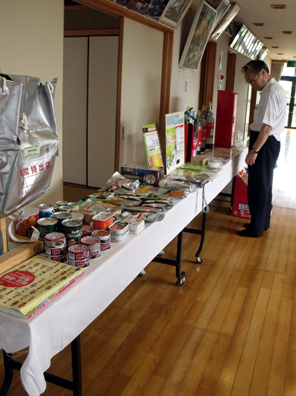 会場には、非常持出袋に入れておくと役立つ品物や消火器、住宅用火災警報器なども展示され、参加者全員が長期保存できるビスケットを持ち帰り、自主防災への第一歩を踏み出した。