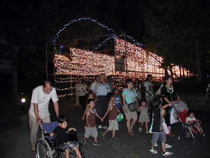 二十五万球のイルミネーションが輝く東近江市サマーフェスタ「第七回コトナリエ」は七日、同市池庄町のひばり公園で始まり、十五日までの九日間(午後七時~同九時半)、幻想的な光の輝きを映し出す。