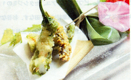 県は、伝統野菜や湖魚など滋賀ならではの食材(重点素材)の魅力を引き出し、県民に親しんでもらおうと、県産農水産物「魅力」向上事業を実施している。とくに今年は、旅館や飲食店、小売店等の県内二十七事業者と協働した取り組みを進めている。この一環として、近江八幡市桜宮町の「ひさご寿し」と大津市おごと温泉の「雄山荘」で、伝統野菜やビワマスなど夏の食材を使った新しいメニューの提供が始まっている。内容は、次の通り。
