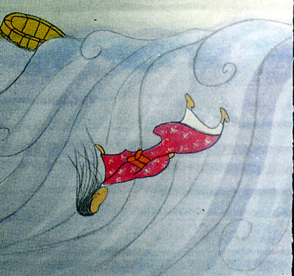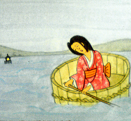 テーマとなる民話は「イサダになった娘」で、内容は昔むかし、草津の宿の娘が、泊まりにきた比叡山の修行僧を好きになり、別れるのを悲しむと、僧は百日間訪ねてきたら結婚しようと言った。娘は堅田の浮御堂の灯を頼りに毎日、琵琶湖を往復したが、百日目の夜、灯が消されてしまい、迷った挙げ句に暗い湖に投げ出されてしまった。娘は今でもイサダという魚になって、琵琶湖で僧に会える日を楽しみにしている、というもの。