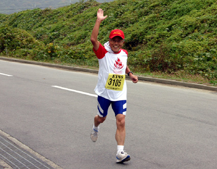 午前十時、福原快隆近江八幡市教育長の号砲による十キロ部門から順次スタートし、選手達は元気よく運動公園を飛び出し、千三百九十四人が完走を果たした。