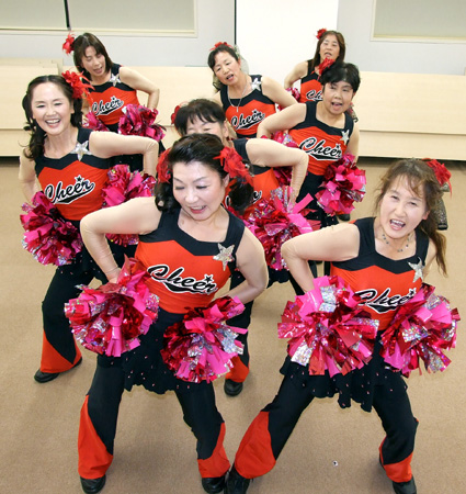 ピンクをさし色としたミニスカートのユニフォームを颯爽(さっそう)と着こなすのは、五十二~六十四歳の女性十五人。テレビ番組で中高年の女性が輝く笑顔を振りまきながらチアとして踊っている姿を見た大前セツ子さんが「これをやりたい」と、竜王町公民館でリズム体操の講師をしていた国本正子さんに声を掛けたのがきっかけだという。