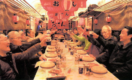 三十人以上の団体で申し込みの場合は、一車両貸切も可能。料金は一人三千円(税込み)。飲食内容は、一人につき、おでん、おつまみ弁当、飲み物三本(缶ビール、日本酒、缶チューハイ、焼酎、茶、ジュース)。追加の飲み物は有料(いずれも各二百円)。