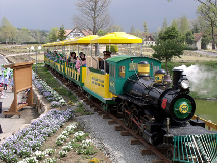 日野町立西大路幼稚園四、五歳児と日野幼稚園五歳児がこのほど、滋賀農業公園ブルーメの丘の新アトラクション“ミニSL電車『ダンプロック号』”の開通記念式典に招かれ、初乗りを楽しんだ。