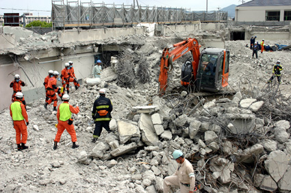 さらに、人力では動かせないコンクリート壁を重機を使って取り除いたり、エアジャッキを使うなどして、実践さながらの救出活動を展開した。