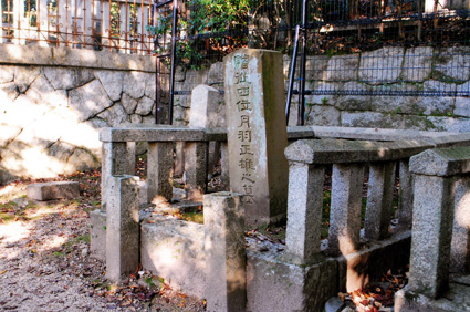六角牢獄跡は、四条大宮から徒歩で十数分。武信稲荷(たけのぶいなり)の筋向かいにある。現在はマンションの敷地となっているが、一隅に「殉難勤王志士忠霊塔」がひっそりと建っている。