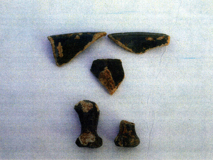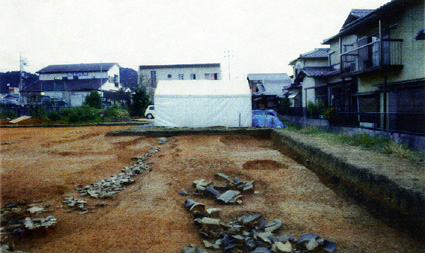 現場からは礎石の抜き取り穴や築地塀の可能性のある溝が見つかっているほか、多量の瓦が廃棄された瓦溜まりから、多くの軒瓦とともに、寺院跡で検出されるような三彩壷や緑釉陶器、灰釉陶器などの高級調度品と平安時代前期の土器が出土した。