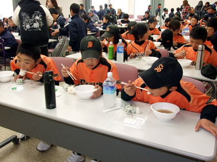 ごはんはエネルギーのもとであり、練習や試合に耐える体を作るもの。安心安全な魚のゆりかご米を腹一杯食べて、元気にプレーしてほしい」と呼び掛けた。