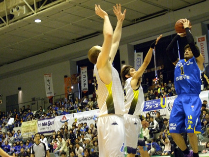 両日とも信州の得点を八十点以下(十四日=86対59、十五日=82対68)に抑えた滋賀。キャプテンの小川伸也選手は「自分たちのプレーをしっかりやろうと話し、慌てずプレーできたことが良かった」と振り返り、「今、僕たちは何としても勝ちがほしい順位なので、(西地区二位の)大阪との直接対決で連勝できるよう気持ちを高めたい」と現状に甘んじることなく、優勝目指して一直線に突き進む。