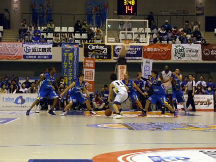 bjリーグ(日本プロバスケットボールリーグ)の滋賀レイクスターズは十四、十五日、ホーム最終戦を野洲市総合体育館で信州ブレイブウォリアーズと対戦し、二連勝でチーム連勝記録を八に伸ばした。現在、西地区三位につけ、すでにプレーオフ進出を決めているものの、アウェイでの残り四試合は、リーグ優勝を最終目標に据えるチームとして真価の問われる正念場が続く。
