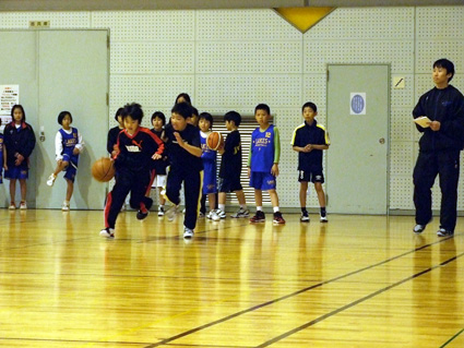 キッズクラスの矢川寛菜ちゃん=小学四年=は「先生がやさしくて、すっごく楽しい」と目を輝かせ、日野原颯君=小学三年=も「まだあまり上手くないけど、とっても楽しい」と口をそろえ、掘悠人君=小学二年=は「体験に来て上手くプレーできなかったけど楽しかったので入った。ダンクをしてみたい」と練習に燃える。