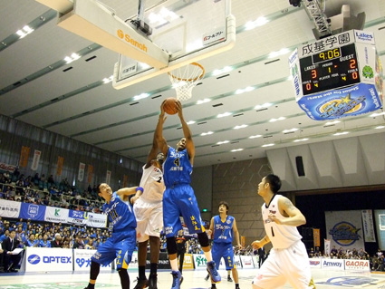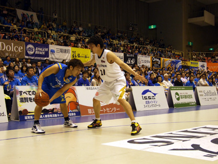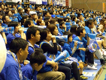 観戦に訪れたbjリーグ・河内敏光コミッショナーの「会場の雰囲気やブースターの声援が、選手たちのいいプレーを引き出してくれる」との指摘通り、残り一分まで一進一退の攻防が続く中、最後はブースター(ファンの呼称)約二千人の祈りの大声援が勝利を引き寄せ、六十九対六十二で接戦を制した。
