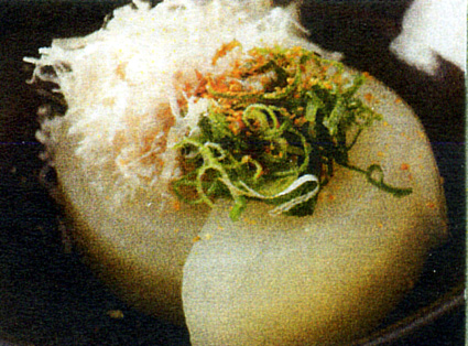 考案されたレシピは、「近江野菜瀬田しじみの唐橋和え」▽ビワマスや坂本菊をつかった「姫寿司(かさね寿司)」▽「近江蕪(大根)の戦国焚き」▽「比叡湯葉と八幡こんにゃく僧兵和え」の四品。