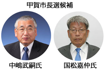 一方の甲賀市長選には、無所属新人で前教育長の国松嘉仲氏(71)が、三期目を目指す無所属現職の中嶋武嗣氏(64)を激しく追い上げる展開となっている。