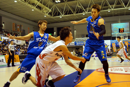 両日ともブースター(ファンの呼称)千五百人以上の声援を背に、新加入の仲摩純平選手や寺下太基選手、ウェイン・アーノルド選手、アルフレッド・アボヤ選手の活躍もあり、天敵・大阪を一日目76―64、二日目74―67で下した。
