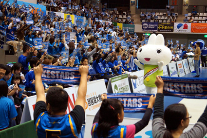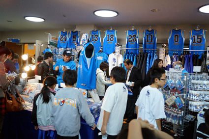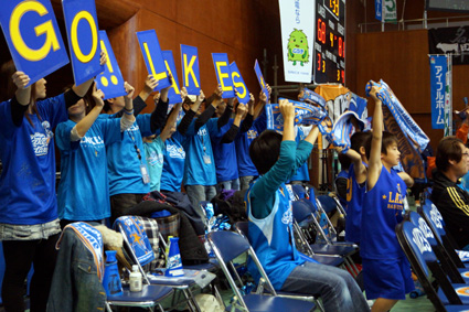 試合開始前には、レイクスチアリーダーズとアリーナDJ・仙石幸一さんによる応援練習があるため、観戦初心者でも溶け込みやすい。さらに、チームカラーの青色グッズを身に付け、小道具にマフラータオルやメガホンを持っていれば、観戦の楽しさも倍増する。