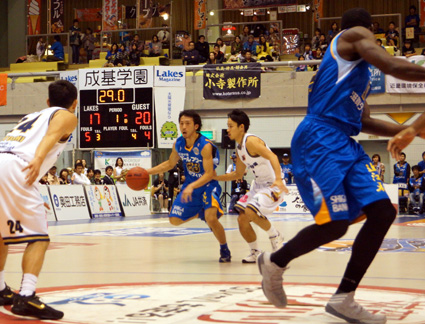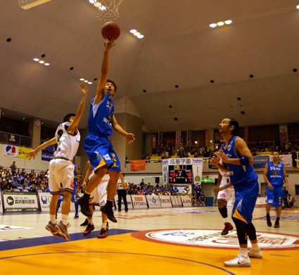 bjリーグ(日本プロバスケットボールリーグ)二〇一二―二〇一三シーズンの公式戦として、地元の滋賀レイクスターズが十、十一日、東近江市今堀町にある布引運動公園体育館でライジング福岡と対戦し、一勝一敗と持ちこたえた。五連敗という負の連鎖を断ち切り、東近江の地から新たな一歩を踏み出した。