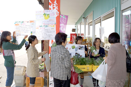 売り子の正体は、能登川北小学校の六年生(児童数五人)。野菜作りの苦楽を体験する総合学習“土からの贈り物”の一環で、専業農家・田井中郁さん(40)の指導を受け、校内のビニールハウスでチンゲンサイを栽培した。