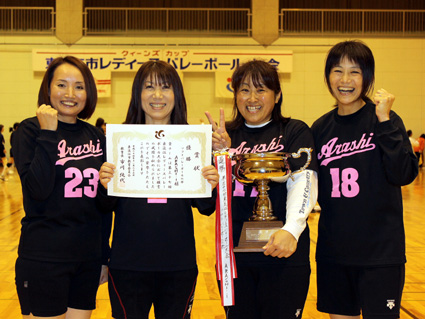 第三十七回東近江レディース・バレーボール大会(主催=市教委・滋賀報知新聞社、共催=市バレーボール協会、後援=市体育協会)が二十三日、東近江市今堀町の布引運動公園体育館で開かれ、白熱した決勝戦の結果、バレーボールの部でコスモクラブが三連覇を達成、ソフトバレーボールの部ではARASHI・iがARASHI勢として四年ぶりの優勝を果たし、それぞれクイーンズカップを手にした。出場全選手が全力を尽くしての大熱戦を繰り広げた。