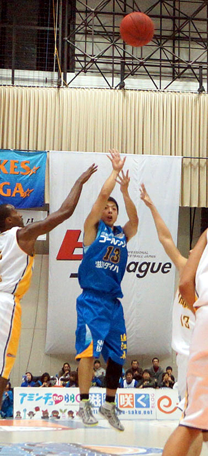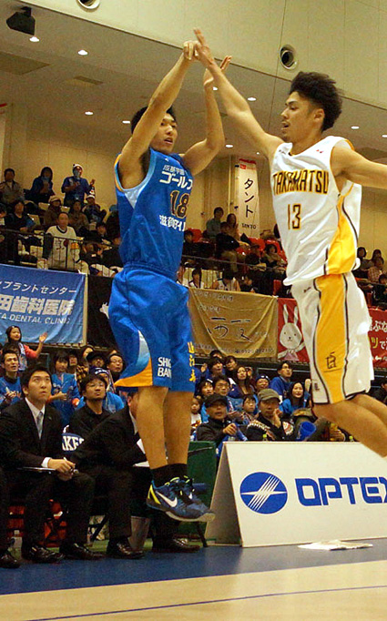 スロースタートとなった二十二日は、高松の攻撃に翻弄されて十五点差まで引き離されたが、第二クオーター残り五分で小川伸也選手が三点シュートを決めると、一気に流れを引き寄せて四点差まで縮めた。