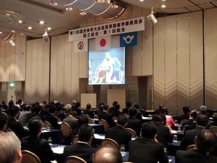 平成三十六年に滋賀県で開催予定の第七十九回国民体育大会に向けて、県開催準備委員会(会長=嘉田由紀子知事)の設立総会と第一回総会がこのほど、大津プリンスホテルで開催され、県や市町、議会、各種団体の関係者二百十六人が出席した。