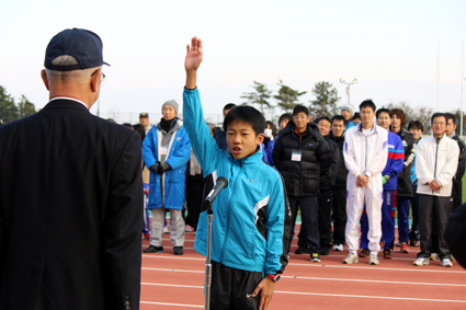 第9回東近江市駅伝競走大会(市体協・市教委主催、市スポーツ少年団共催)が1日、布引運動公園陸上競技場で絶好のコンディションの中、開催された。