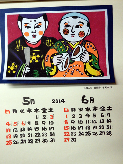 社会福祉法人・瑞穂(大津市)は、東近江市五個荘の郷土玩具「小幡人形」の図柄をあしらった、恒例の木版手摺りカレンダーを発売している。「色鮮やかで、素朴な味わいが特徴です」とPRしている。