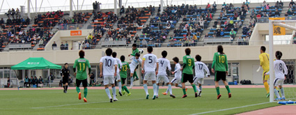 随所に好プレーが見られ、勝利に向かって必死にプレーする選手たちに、スタンドからは大きな声援が送られた。宇野勇気キャプテン(同5)は「できることはやり切れたが、最後に甘さが出た。若い選手も経験を重ねて、勝ちを重ね、前期優勝をめざしてがんばります。次の宮崎で勝ち点3を取れるよう、全員で準備して戦います」と、反省と共に次節へ闘志を燃やした。